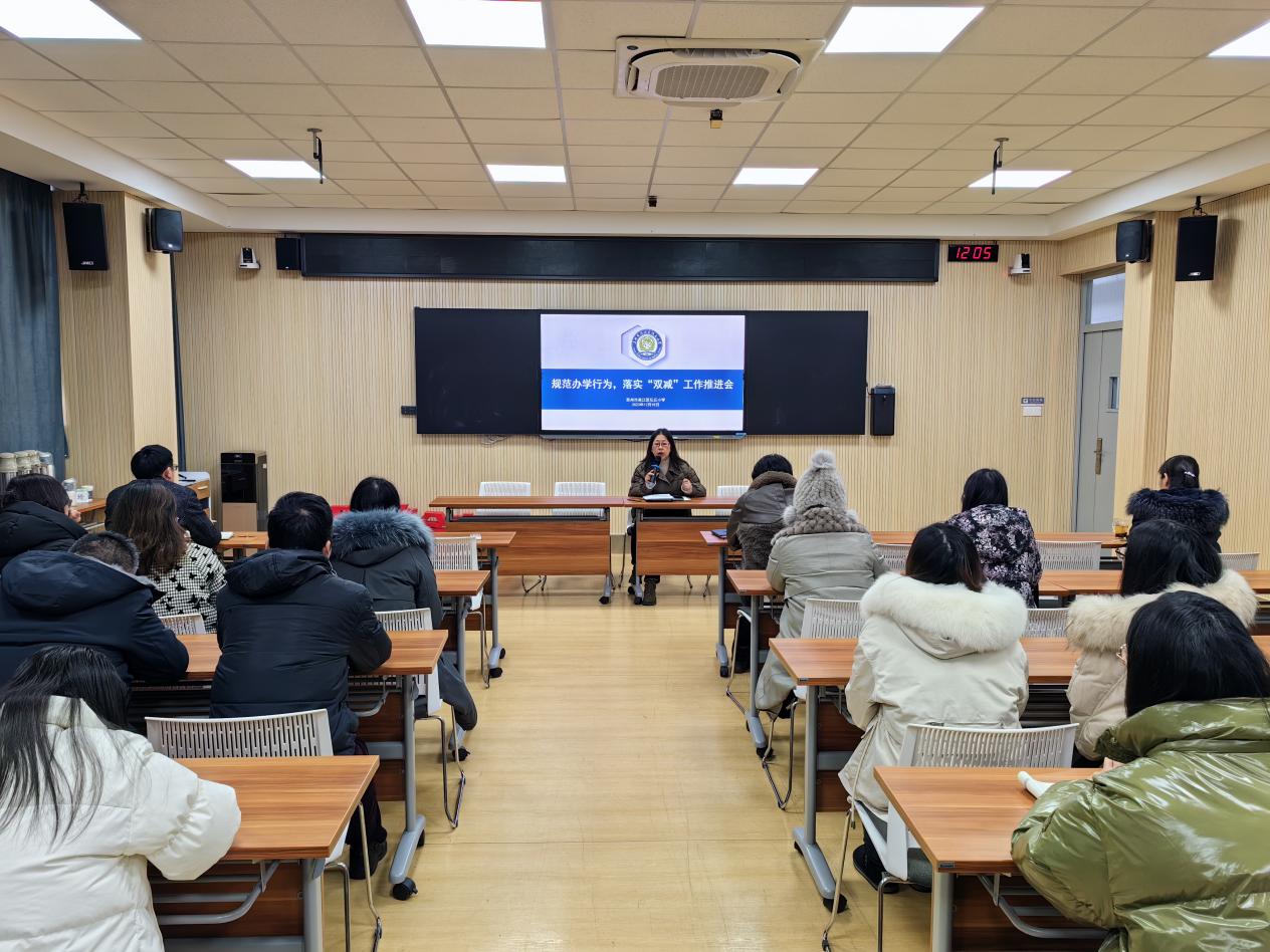 2023年12月18日,我校张玉芳校长根据区“双减”工作推进会会议精神,召开班主任及语数英教师专题会议。会上,张玉芳校长传达会议精神,要求教师认真执行“五个严格”,即严格规范作息时间;严格规范作业管理;严格规范课程教学;严格规范考试管理;严格规范课后服务。