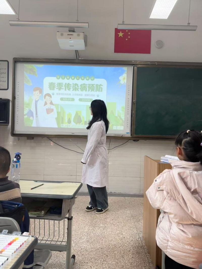 坛丘小学卫生保健室开展春季传染病预防教育。