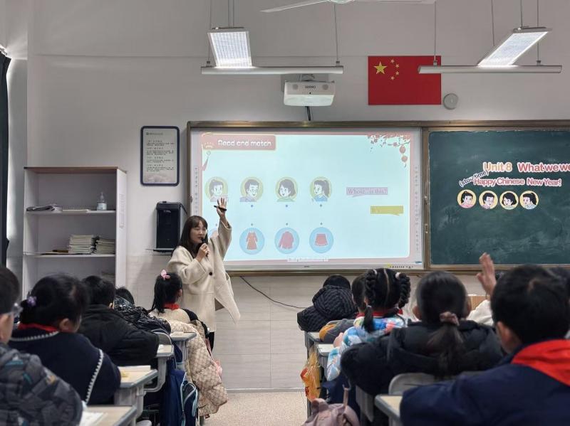 为落实 “语言学习 + 文化传承” 的双维教学目标,近日,我校小学英语教研组张澜老师开展了以 4A U8 Story time Happy Chinese New Year 为主题的公开课。课堂以春节服饰为切入点,将英语语言知识与中华传统节日文化深度融合,通过丰富多样的互动活动,让学生在趣味学习中提升语言能力,感受传统文化魅力。